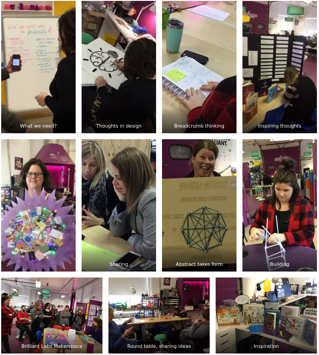 This two-day workshop emerged from a months-long dialogue that began as a discussion about coding and literacy and evolved into a conversation about the parallels between making and and writing. We began to wonder how we could invite language arts teachers into the collaborative learning space at Brilliant Labs and create the conditions for them to see these connections while providing opportunities to reflect on their experiences as learners and creators and on how these experiences might shape the decisions they make about the learning and creating in their own classrooms.