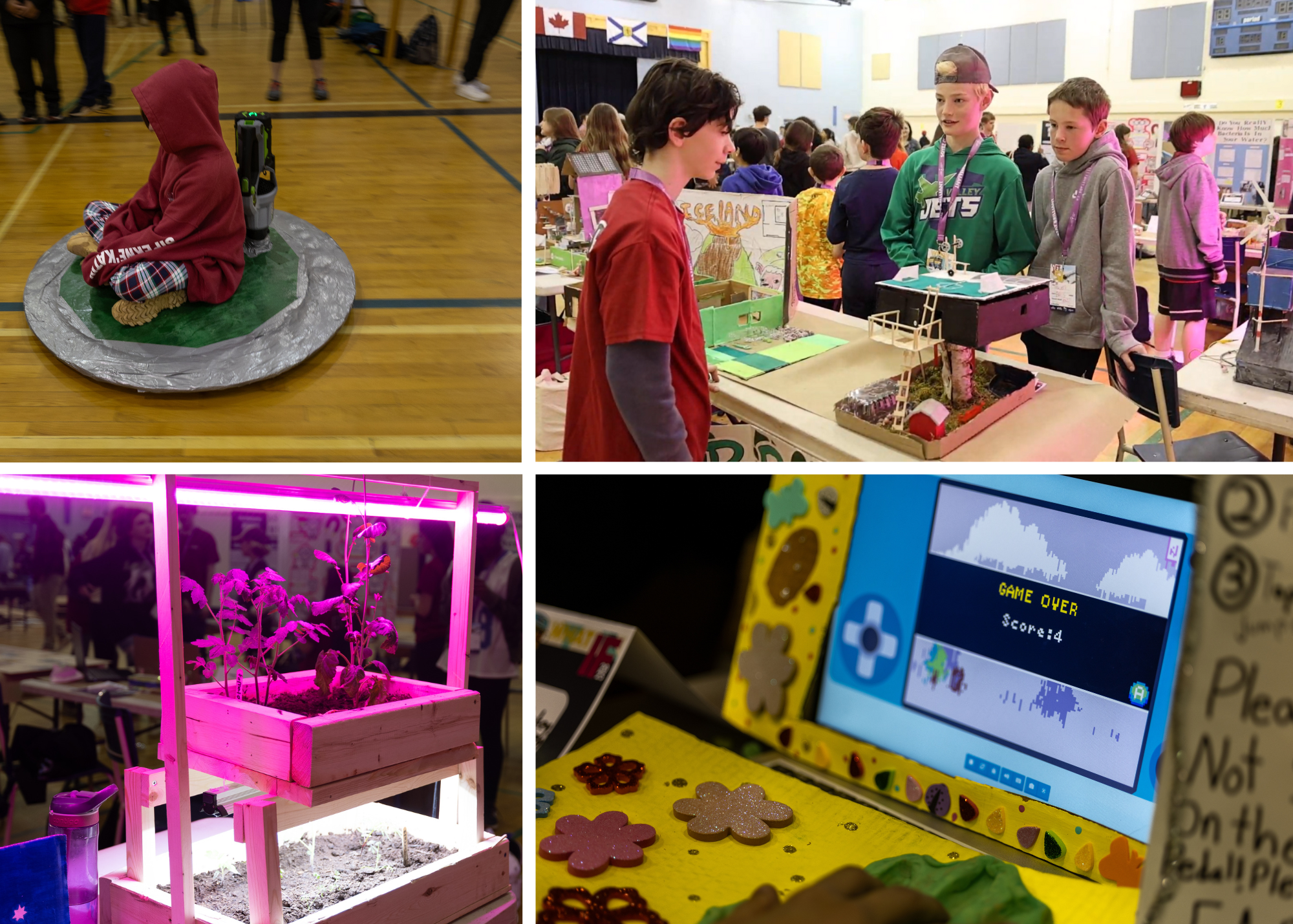 Projects from accross the province were exhibited throughout the day, representing elementary, middle, and high schools, along with community and co-op partners from across Nova Scotia. Together, these projects reflected a strong STEAM approach, blending science, technology, engineering, arts, and mathematics in thoughtful and often surprising ways.